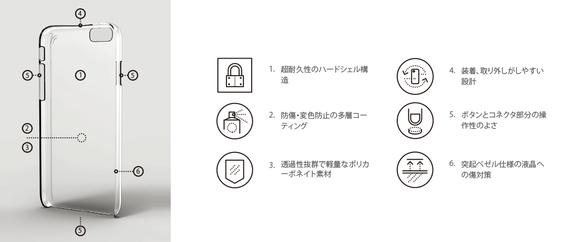 絶え間ない研究開発によって優れた保護性 能を備えた、わずか1mmの薄さと超軽量のケースの開発に至りました。