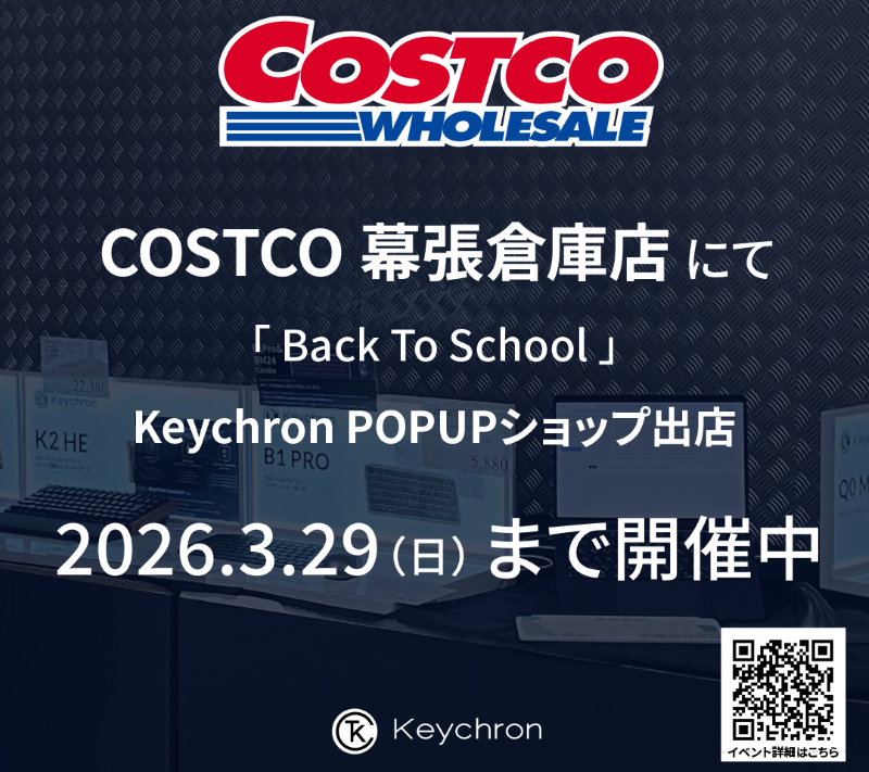 2026年3月20日(金)~3月29日(日)にCOSTCO幕張倉庫店で開催される文房具や学用品のセールイベント「Back to School」にて、Keychron POPUPショップの出店が決定しました!