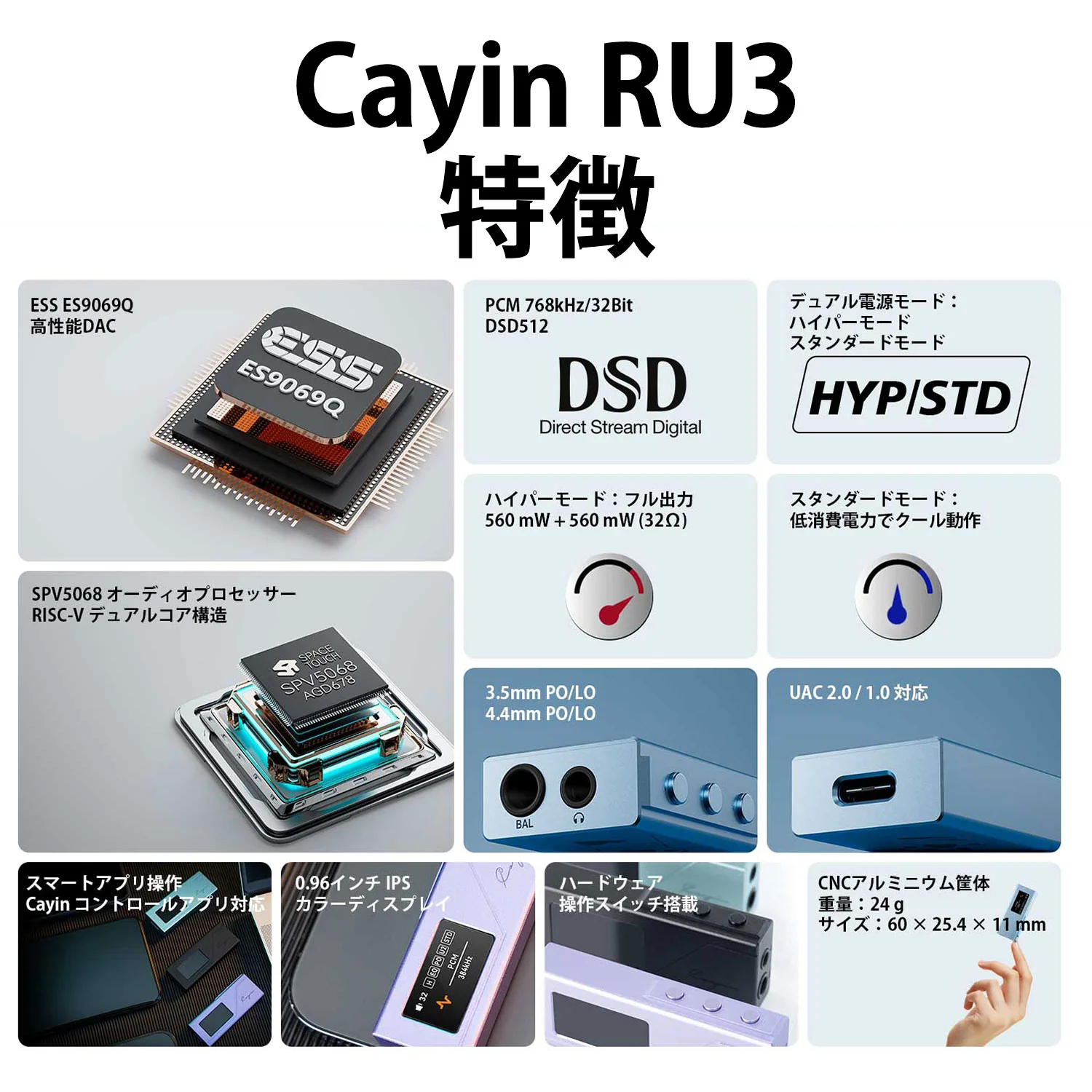 Cayin RU3 ポータブル USB DAC / ヘッドホンアンプ・ドングル