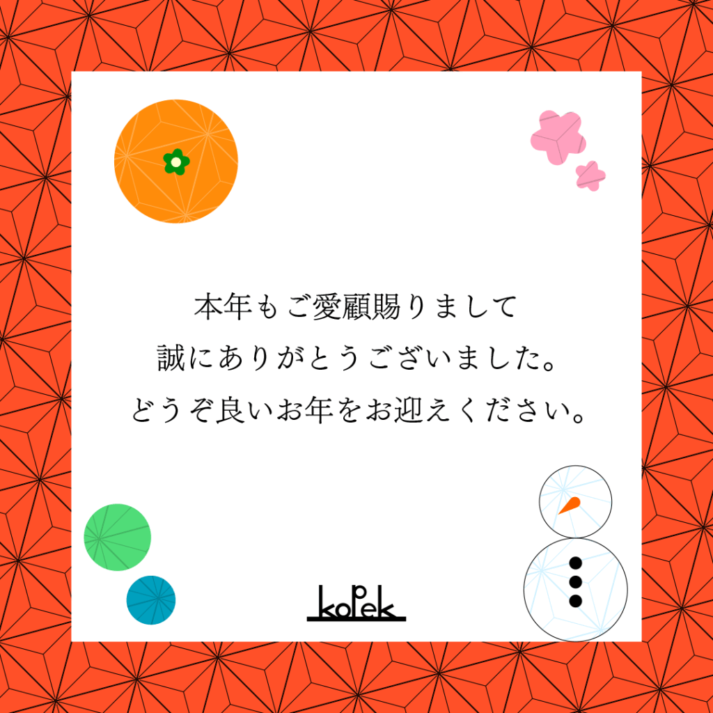 本年もKOPEK JAPANをご愛顧いただき、誠にありがとうございます。