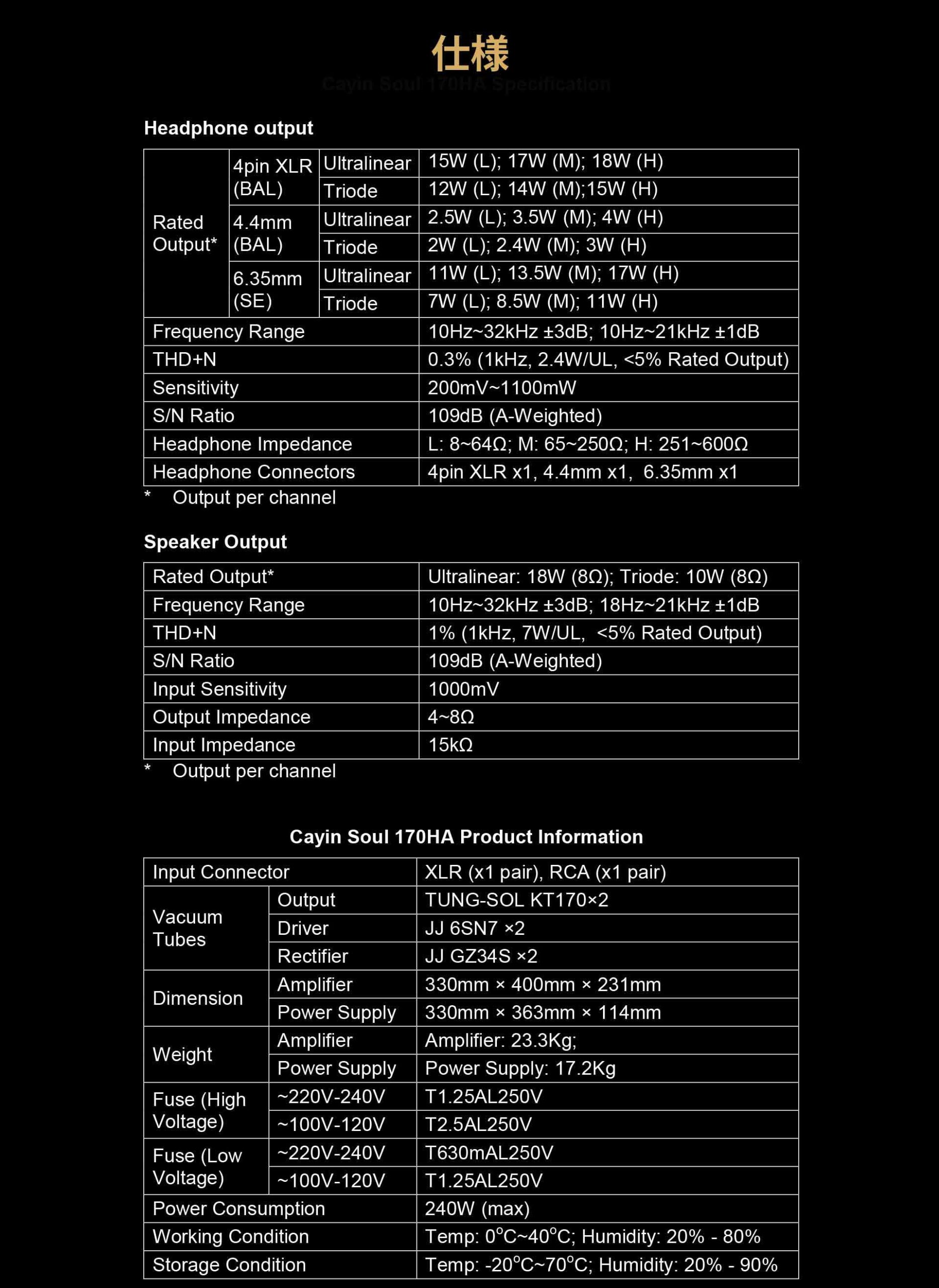 Cayin Soul 170HA KT170真空管搭載・純A級ヘッドホン/スピーカーアンプのご購入は