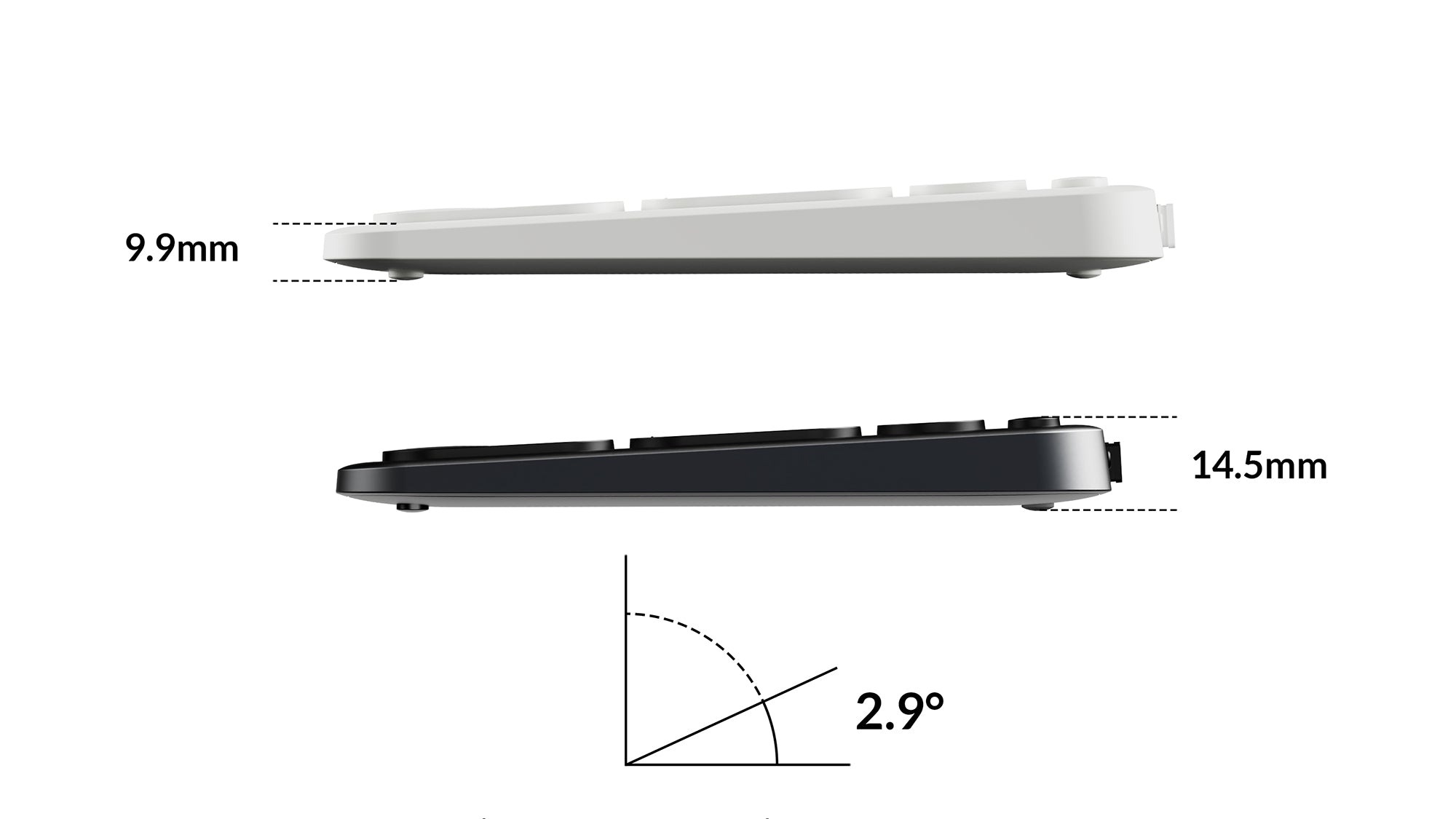 2.9°のタイピング角度と、厚さ9.9mmの超薄型一体型ボディを採用。 安定したタイピングを実現し、ぐらつきを防ぎながら、長時間の作業でも手や指の疲労を軽減します。