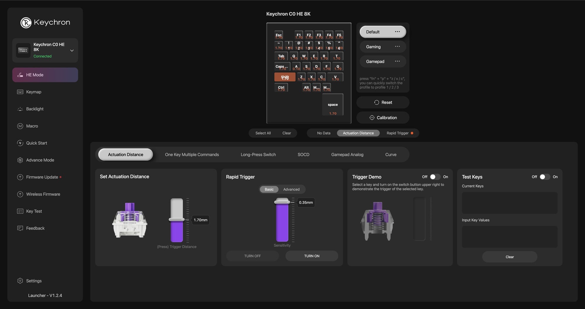 8000Hzのポーリングレートにより、キーボードと接続デバイス間で超高速な信号伝達を実現。 競技性の高いゲームプレイや高精度なタイピングに最適で、C0 HE 8Kは入力遅延を最小限に抑え、すべてのキー入力を瞬時に反映します。わずかな差が勝敗を分けるシーンでも優位に立つことができます。 また、専用のLauncher Webアプリを使用すれば、1000Hz/4000Hz/8000Hzのポーリングレートを簡単に切り替えることが可能です。