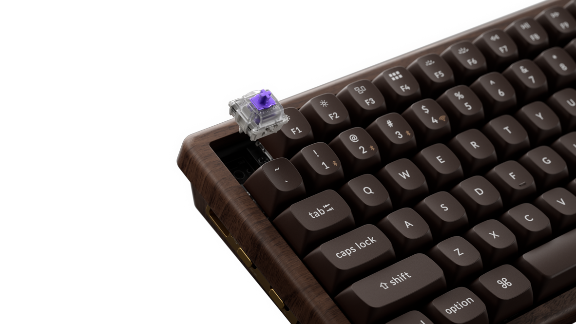 天然ウォールナットウッドを使用したボディを採用したオールウッドスペシャルエディションは、上質なクラフトマンシップを愛する方に向けた、存在感のある特別な一台です。OSAプロファイルのダブルショットPBTキーキャップを搭載し、さらに木製ボディ内部にはアルミニウムプレートを備えることで、高級感のある外観と耐久性、そして確かな打鍵感を実現しています。
